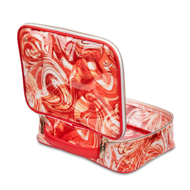 Seriously large for your seriously big makeup collection, this stylish, see-through makeup case with carry handle and faux-leather trim is a perfect place to keep all your beauty goodies (including full-size bottles) - for easy, everyday storage or an extended vacation.