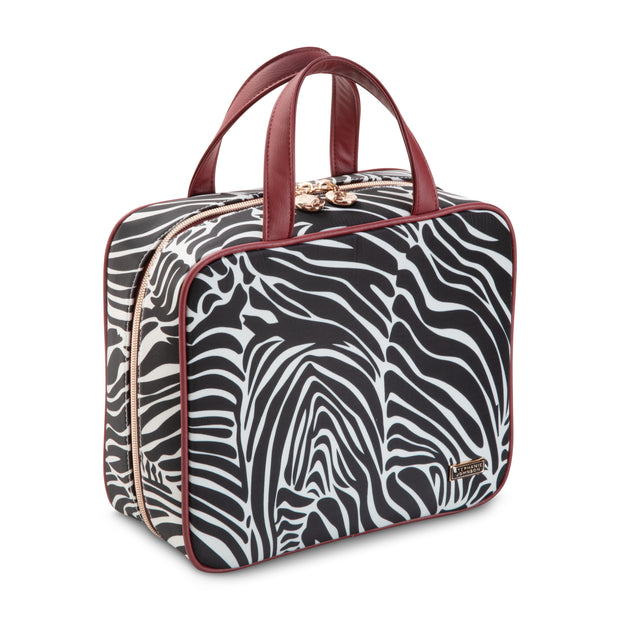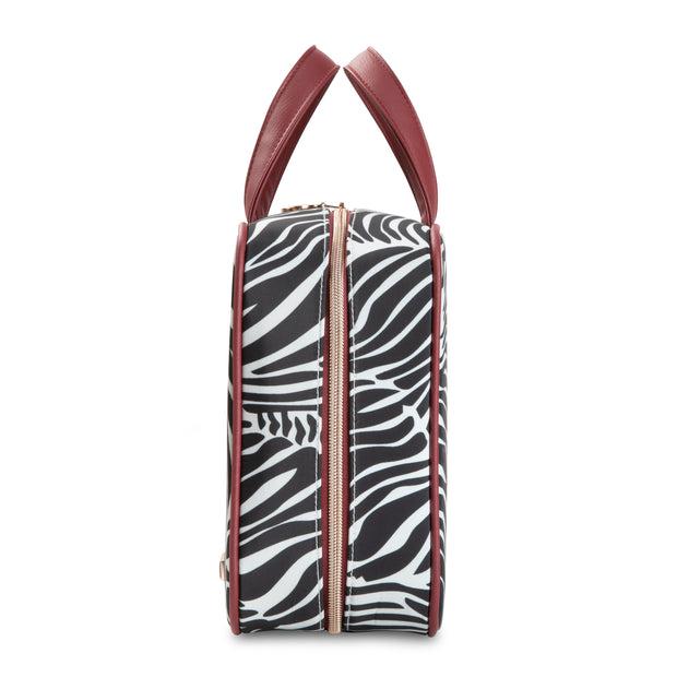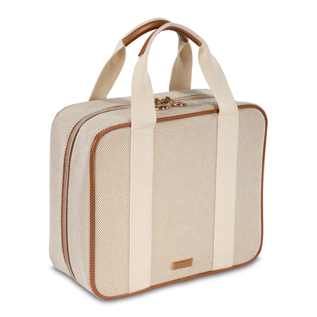 Its roomy interior boasts four removable compartments allowing easy access to all of your precious cargo. Tall handles make it a cinch to hang over a door or carry along.