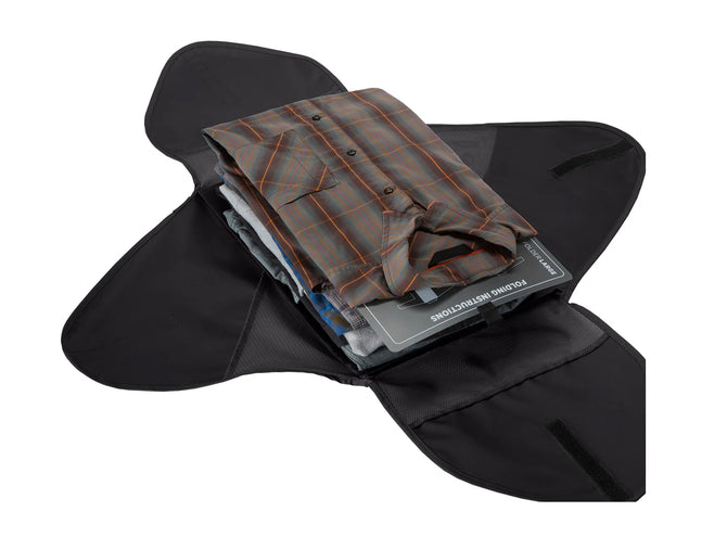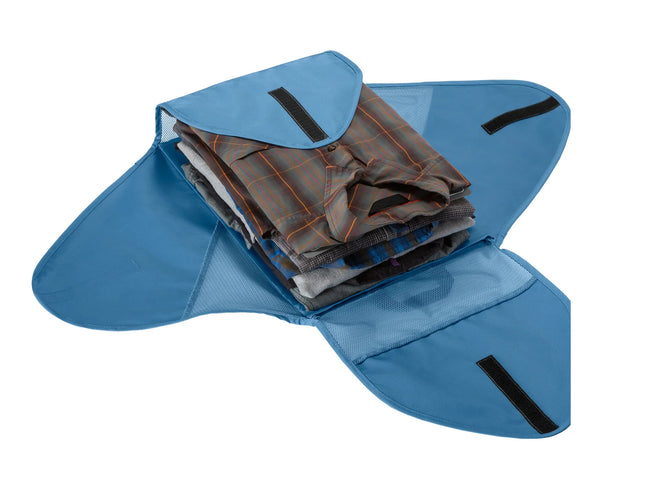 Organize clothing and arrive unwrinkled with the Pack-It® Starter Set. A compressible garment envelope and folding board make it easy to crease and pack collared shirts and dresswear. The two packing cubes shrink rolled or folded items into space-saving parcels. All fabrics are water-resistant and 100% recycled.