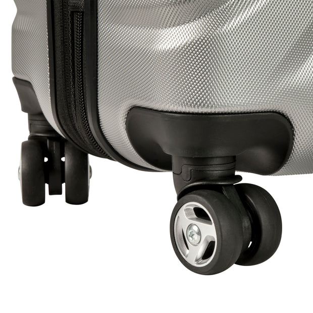Big adventures can come in small packages—just look at this carry-on spinner case from the Nimbus 4.0 collection. The sturdy polycarbonate alloy shell keeps your belongings safe in the overhead bin and the comfortable top carry handle helps you lift the case in and out of overhead bins. This case’s rich, Pacific Northwest-inspired hue will look smart wherever you go, and the retractable handle and smooth-rolling spinner wheels ensure you get there with ease. Keep all your essentials tidy with clever interior features, including a separate zippered packing compartment, a zippered mesh pocket, and webbing tie-down straps that help keep your wardrobe wrinkle-free, so you’re ready to explore.