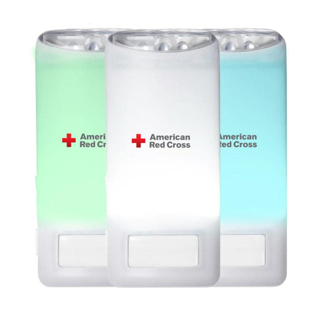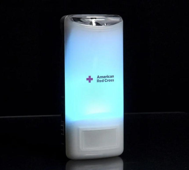 This emergency LED blackout flashlight automatically turns on when the power goes out. With the following multiple features: nightlight to keep your hallways, kid's room or bathrooms softly illuminated at night. Motion sensor light. Auto dimming nightlight. Tri-color (blue, white and green) surface glow nightlight. LED flashlight. Plugs into a standard wall outlet to automatically recharge.