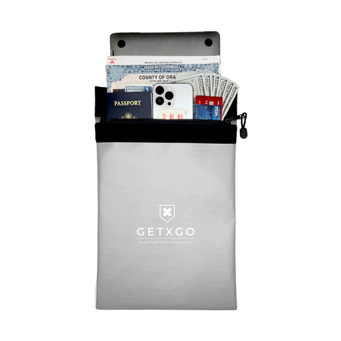 Give yourself some peace of mind by protecting your important documents and small valuables from fire. Made from triple-layer high-quality silicone-coated fiberglass, this 100% fireproof and water-resistant document pouch can withstand temperatures up to 1832F, plus keep its contents dry in a rainstorm. Portable and easy to carry, it will keep you prepared and ready.