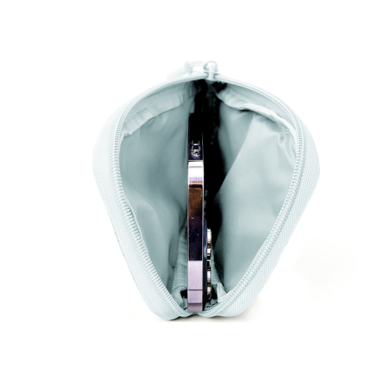 - Large zippered pod holds mobile phone, charging cable and passport.