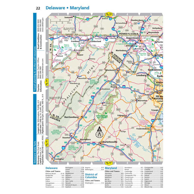 - Tourism websites and phone numbers for every U.S. state and Canadian province on map pages.