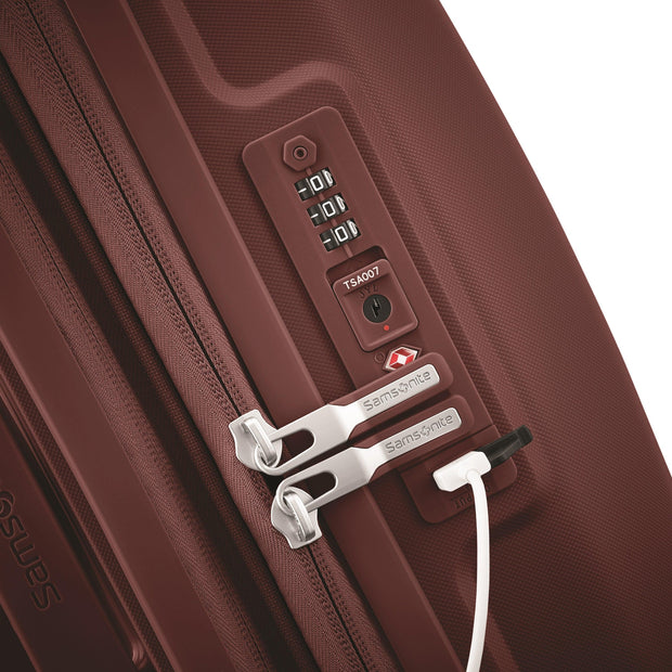 - Built-in TSA lock with an integrated USB port (carry-on size only) and internal battery pocket.