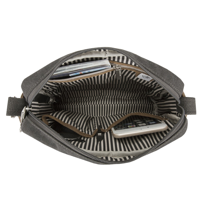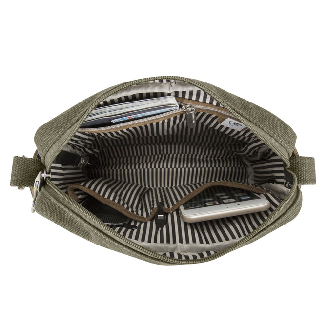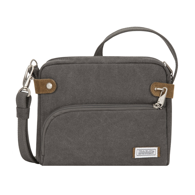 The Travelon® Heritage Crossbody keeps getting better with age. Americana inspired with a modern twist, this quality-crafted bag is made from durable water-resistant cotton canvas with a soft, worn touch, full-grain suede and matte nickel hardware that only get better with age and a few good adventures. Thoughtful organization for today’s carry needs and comfortable to carry.