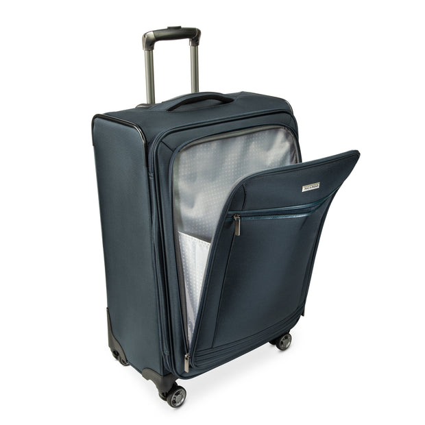 The PVC lined built-in wet pocket keeps your essentials dry and organized. 360 ̊ dual wheels make navigating through airports a breeze.