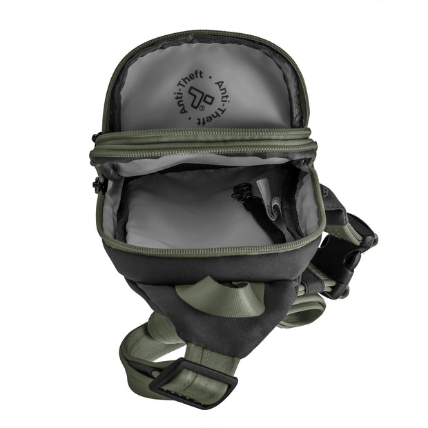 • This modern compact sling provides the convenience of hands-free travel that makes bustling markets or an adventure hike worry free. Blending style, durability, safety features on every side, premium organization, slash-resistant and lightweight performance materials (only 0.65lbs)–is a game changing experience.