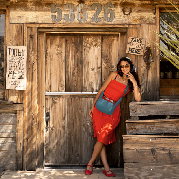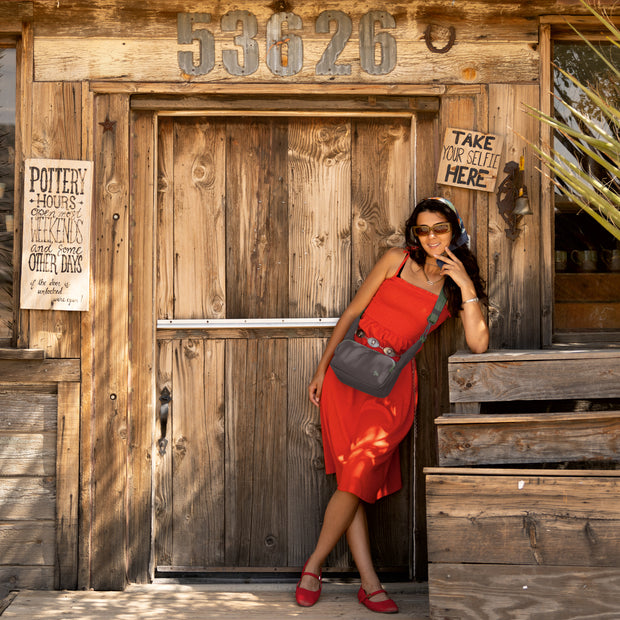 A modern Anti-Theft East/West Crossbody, 9.75"W x 4.75"H x 4"D in size has a strong horizontal style with the depth to hold a DSLR camera and lens. This bag is ideal for hands-free journeys through bustling markets, or an adventure hike, stress-free. Blending style, durability, safety, premium organization, slash-resistant and lightweight performance materials (only 0.85 lbs), combined this bag is a game changing experience. It’s Slash-resistant body and straps; Locking compartments; Lock-down hardware and RFID blocking prevents thieves from breaking into, or snatching, your bag and identity. A soft strap provides a truly comfortable carry experience. This 3.5 cubic liter body with command center organization allows you to keep your gear within reach.