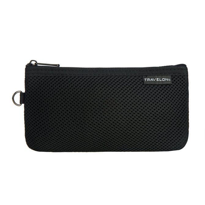 Includes RFID blocking air mesh, zipper pouch ideal for cards, passport, currencies, receipts and tickets